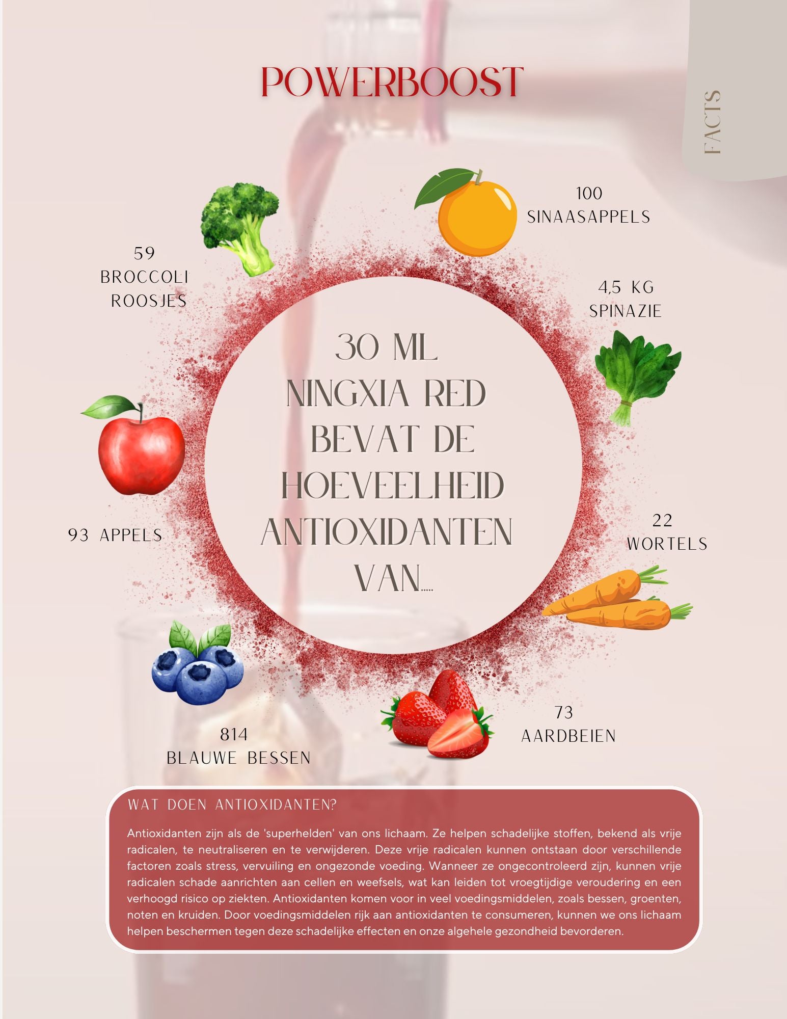 NingXia Red® is iets wat wij dagelijks gebruiken en waar we niet meer zonder willen. Deze heerlijke superfruitdrank combineert de kracht van de Chinese wolfsbes (gojibes) met een rijke mix van bessen, vruchten en pure essentiële oliën.